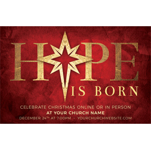 2) Online Church Services: Just because you are holding services online doesn’t mean you shouldn’t promote them! In fact, with many people not traveling this year, having a Christmas service online lets families who are separated watch together from a distance and feel more connected! Any postcard design can be customized for online only or both online and in person. Here are a few great options: