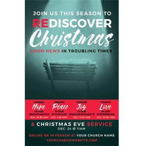 But no matter your situation, Christmas is still coming and people are even more in need of the hope and peace that only Jesus can bring. And people are ready for some good news, so as God’s church we need to bring it to them as best we can. Below are the newest on-trend designs and products you can use this season to invite people to your online or in person services.
