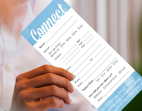 - Encourage in-person and online first-time guests to fill out Connect Cards, so you can get their information and follow up with them.