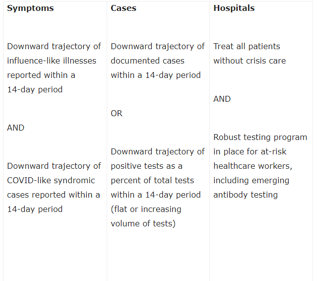 According to President Trump and his team, the task force has created a “Gating Criteria’ followed by three phases.