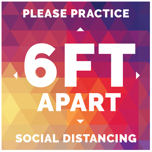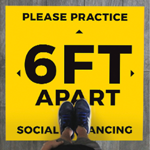 Floor Stickers – These 36″ x 36″  stickers adhere to any floor including industrial carpet and provide reminders to everyone to maintain social distancing.